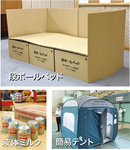 避難生活の環境改善のため、ダンボールベッドや、液体ミルクなど、災害の際の備蓄品を大幅に拡充